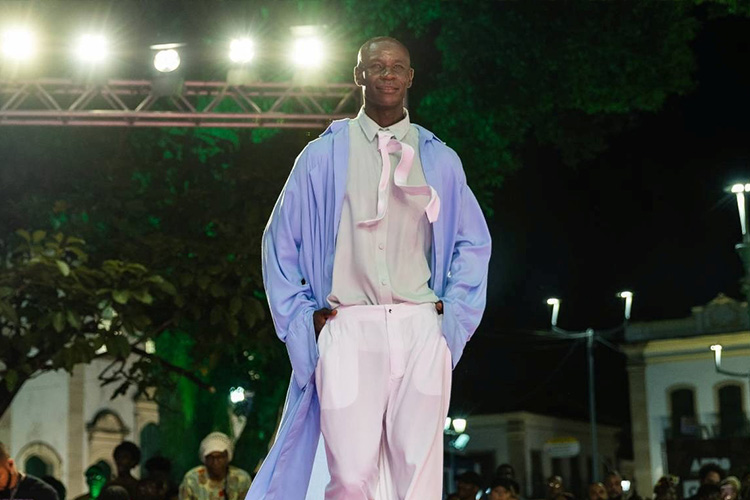 “É um tecido versátil, que pode ser usado em diversas situações, seja para imprimir algo mais sofisticado ou mais casual. Com isso, o look dialoga com as tendências de moda contemporâneas, reafirmando que estilo e diversidade caminham juntos”, afirma o estilista sobre a peça que integrou o bloco do desfile dedicado à leveza e ao autocuidado.