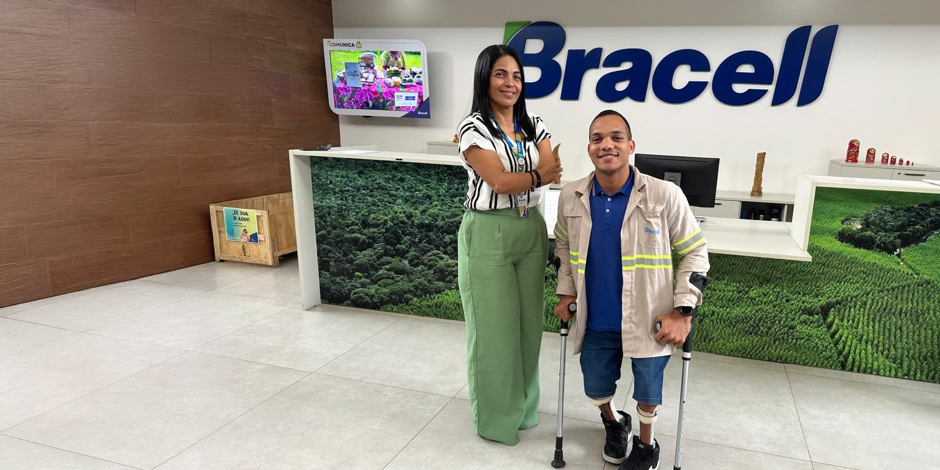 Outro exemplo é o de Pedro Vinicius da Silva, que iniciou sua trajetória na Bracell como jovem aprendiz na área de Colheita e, atualmente, atua como Auxiliar Administrativo em Serviços Compartilhados. Pessoa com deficiência física, ele ressalta a importância de um ambiente estruturado para acessibilidade. “Quando cheguei na empresa, me surpreendi positivamente com o cuidado constante em proporcionar um ambiente acessível e de me incluir em todas as atividades, garantindo os recursos para que eu participe das ações da empresa”, relata.